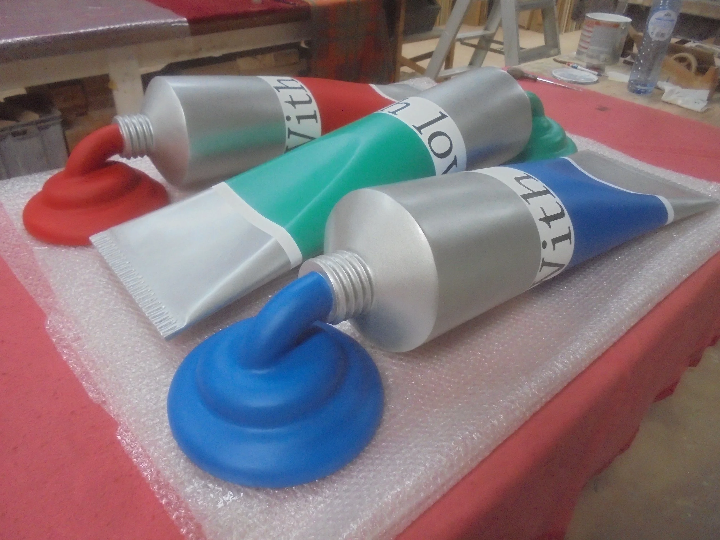 Wanneer Twinplast voor haar 3D-vormen in EPS (piepschuim) of PUR (polyurethaanschuim) een schilderafwerking nodig heeft, of soms een harde coating (in acrylhars), doen wij ook dit maatwerk.